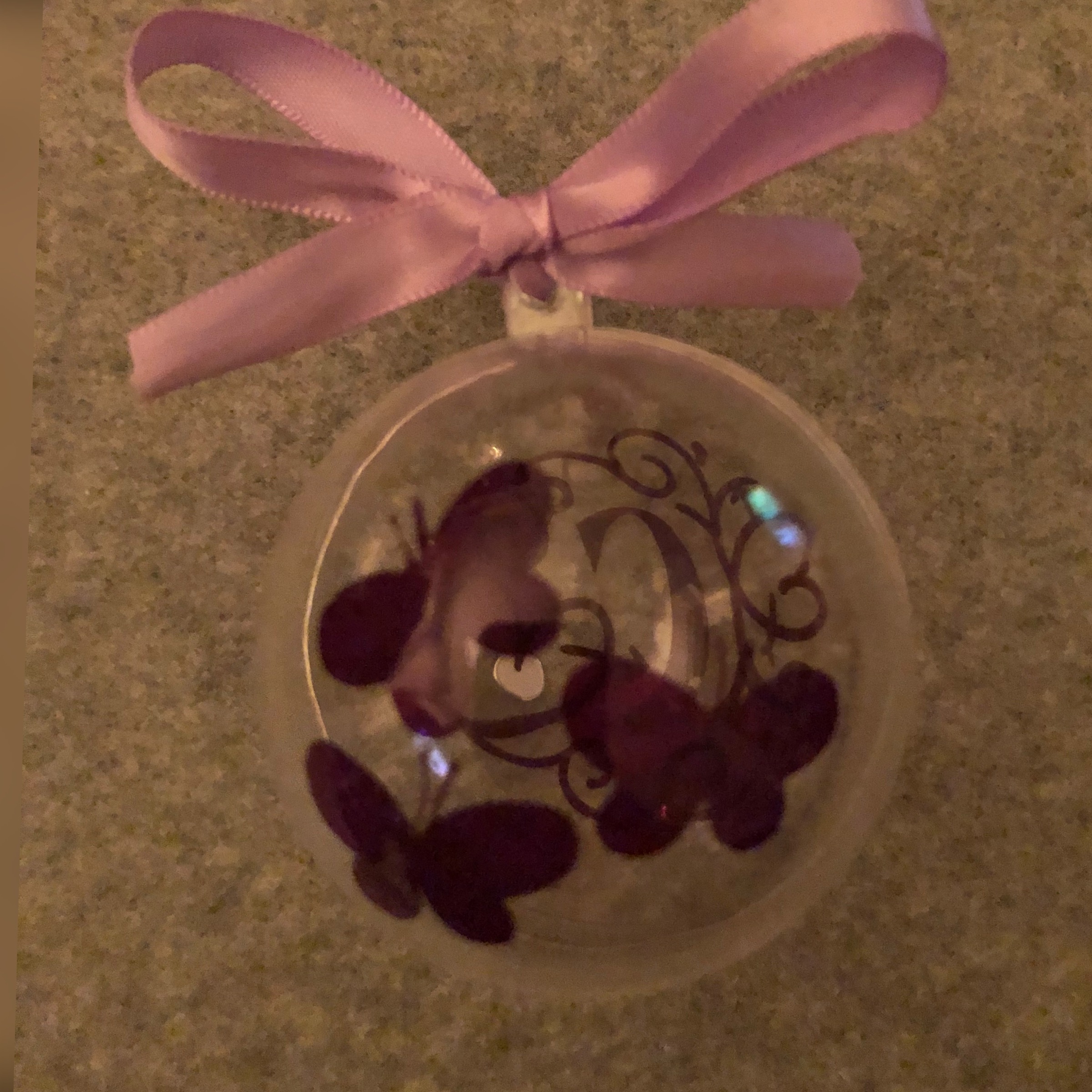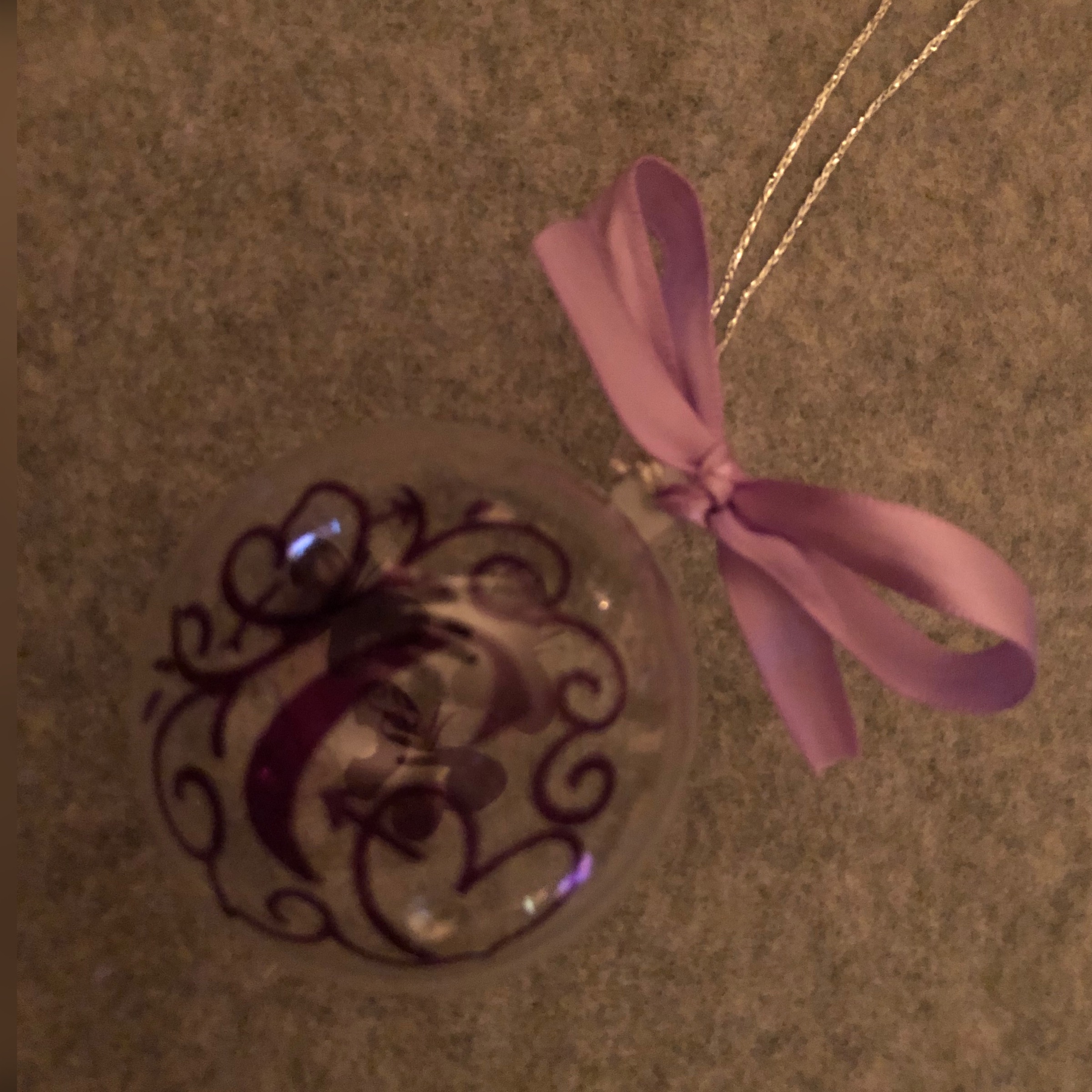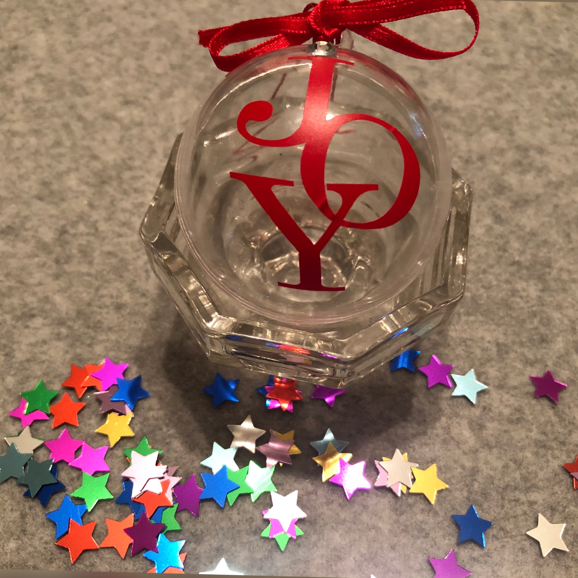 Transparent  6cm bauble, personalised with name, initial or design in choice of colour vinyl.